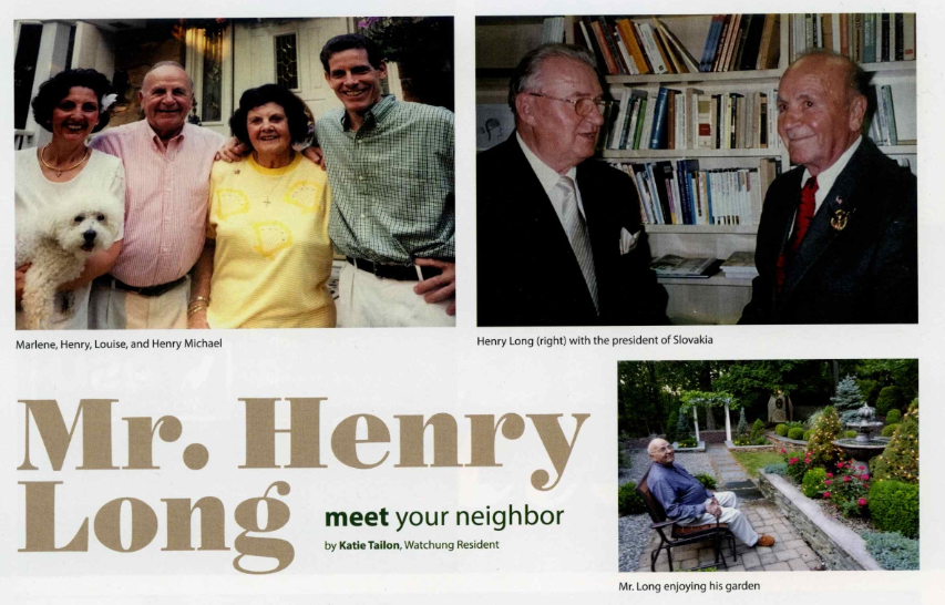 Katie Tailon featured Henry Long in the 2 page “meet your neighbor” column of the November 2017 issue of Watchung Living.